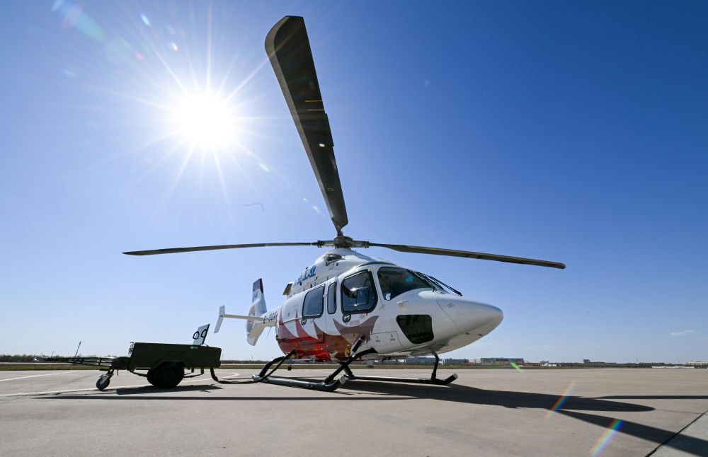 這是2023年4月7日在航空產業天津直升機無限義務公包養網司停機坪拍攝的“吉利鳥”AC332直升機。新華社記者 孫凡越 攝